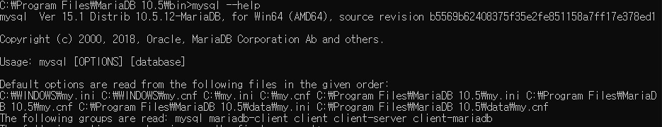 -- 윈도우의 경우 관리자 권한으로 /MariaDB/bin 에서 실행