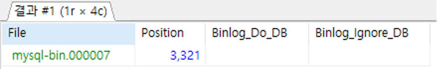 4) Master 정보 확인 (File, position 확인해서 Slave DB에서 정합성 맞추기)