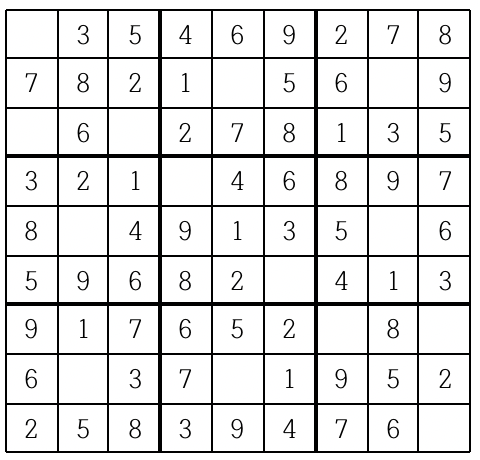 스도쿠 판을 채우는 방법이 여럿인 경우는 그 중 하나만을 출력한다.