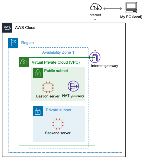 public subnet 영역에 있는 Bastion server를 통해 Backend server에 SSH 접속하려는 상황.