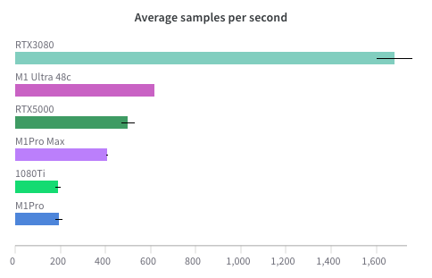 | GPU | M1 Max - 32 코어 | Nvidia RTX 2070 Super (8GB) |