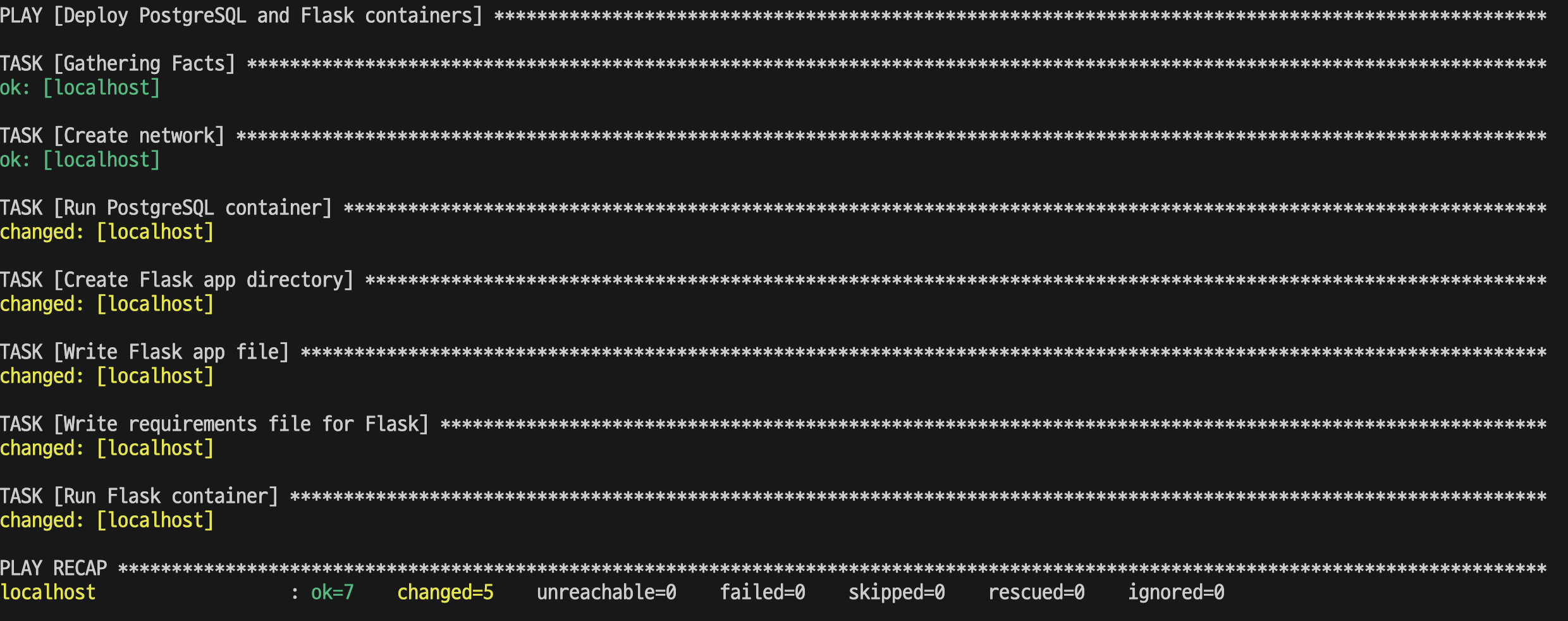 - name: Deploy PostgreSQL and Flask containers